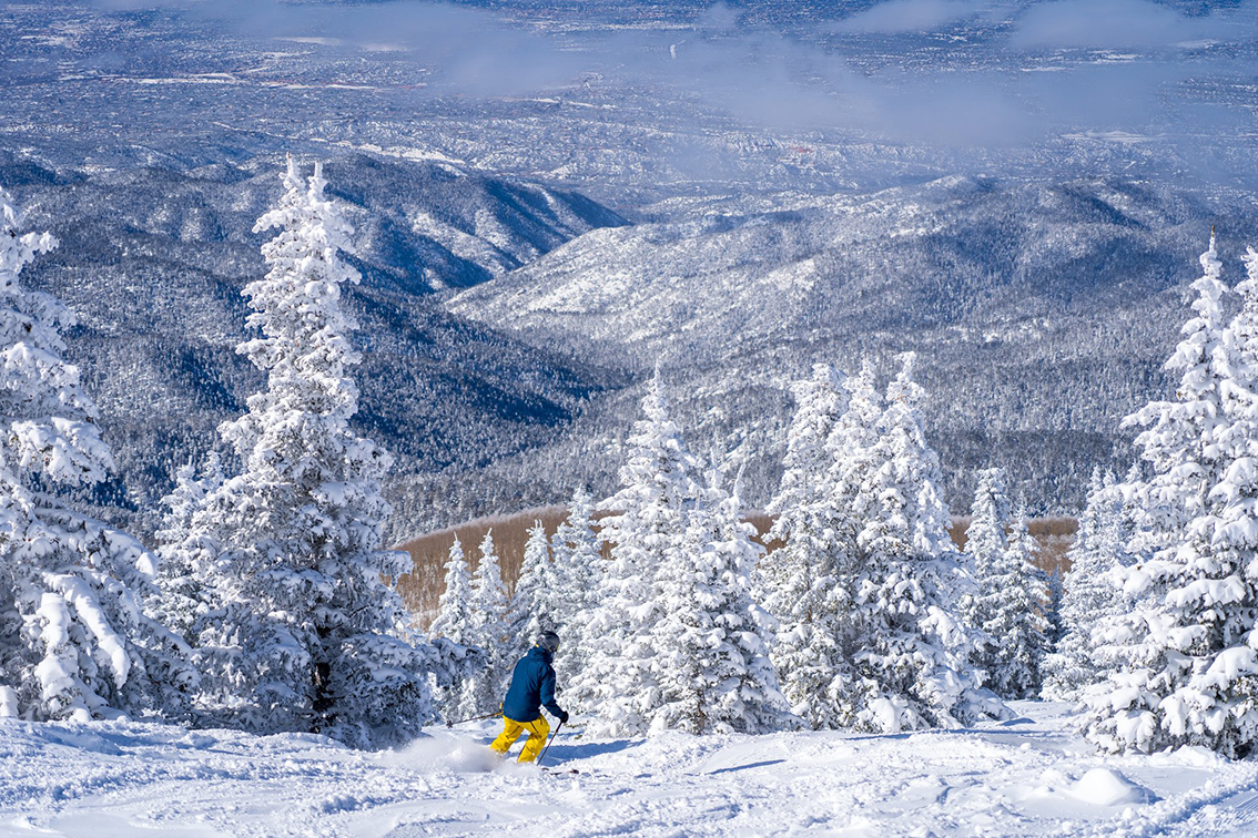 Take the scenic 16-mile drive that leads from the historic Santa Fe Plaza into the beautiful Sangre de Cristo Mountains—and you’ll find yourself at the base of Ski Santa Fe—an event in its own right.